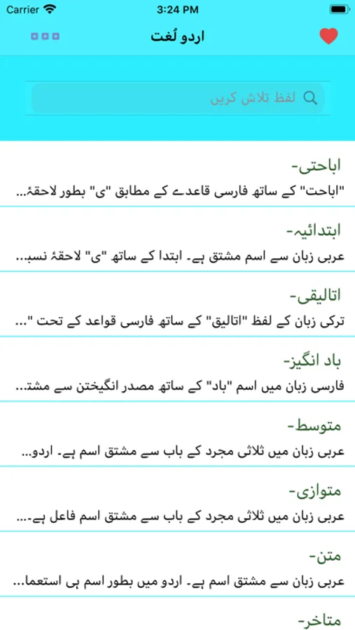 Offline Urdu Lughat is the an offline Urdu to Urdu dictionary or Urdu Lughat with complete details of a words, meanings, examples and other details. Urdu Lughat Dictionary contains more than 250,000 words. This easy to use Lughat has built-in Urdu Keyboard to search words in Urdu.