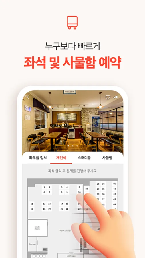 쉽고 빠르게 원하는 좌석과 사물함 자리 선점하세요.