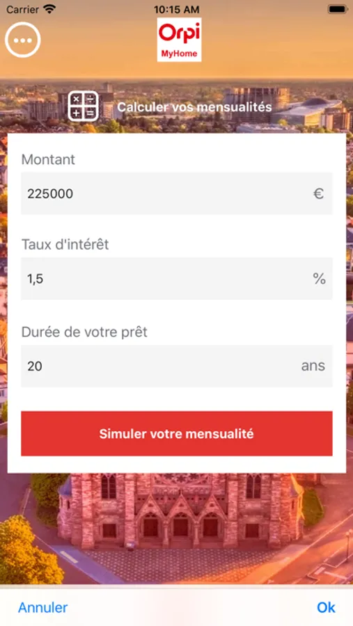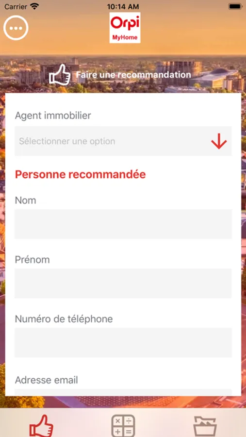 Grâce à l'application Orpi MyHome vous allez à la fois pouvoir faire une recommandation d'un ami, voisin, famille, etc à l'agent immobilier de votre choix, mais également pouvoir calculer vos mensualités de remboursement de votre crédit immobilier.