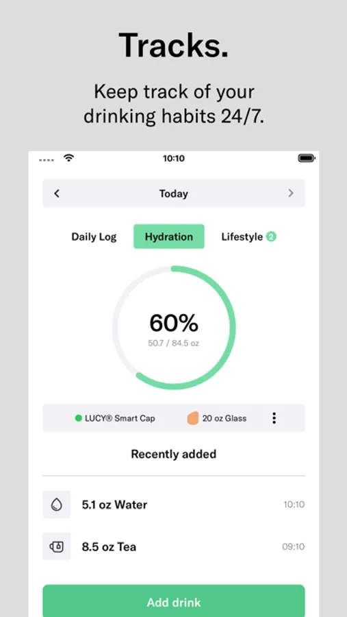 Keep track of your drinking habits 24/7 and reach daily targets.