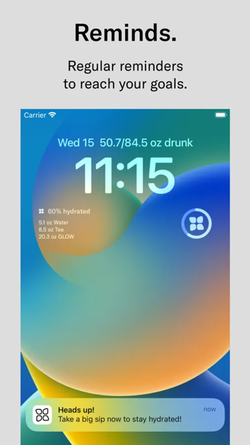 Regular water reminders help you reach your daily drinking goals – sip by sip.