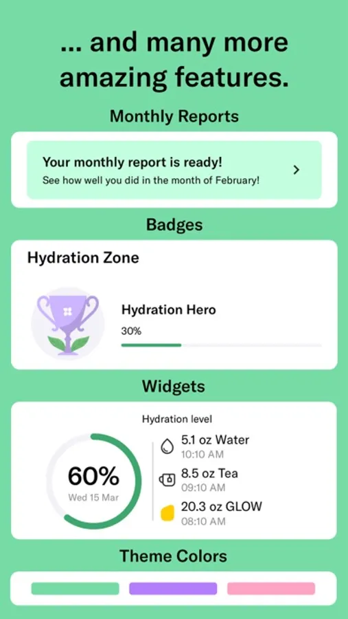 We even integrate with Apple Health, which means you can sync your water intake to Apple Health and automatically update your hydration target based on the activity you logged in Apple Health.