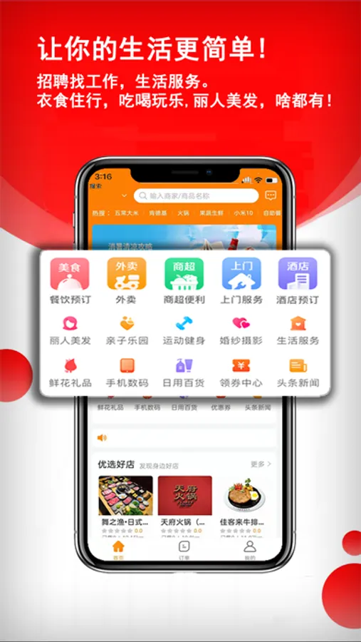 邻店网,让你的生活更简单!招聘找工作,生活服务。衣食住行,吃喝玩乐,丽人美发,啥都有!同城生活服务平台。自营品质外卖。独特美味即时享。特价房酒店随时订。商品百货,厂家直销.自营性价比商品买贵包退!更贴心的上门服务。更周到的跑腿服务。附近餐饮天天特价惠顾。即时查看商家信息一键导航。购物返积分兑换商品。