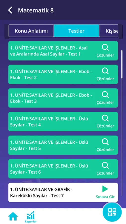 Milli Eğitim Bakanlığı Talim Terbiye Kurulu tarafından belirlenen konu ve kazanımlarla eşleştirilmiş, ders programları ile uyumlu soru havuzumuzdan yararlanarak deneme sınavları ve testler hazırlayabilirsiniz. Sınırsız testler oluşturup video çözüm ve konu anlatımları ile konuları tekrar edip pekiştirebilirsiniz. Özetle ihtiyacınız olan konulardan istediğiniz zorlukta ve miktarda soru çözebilirsiniz.