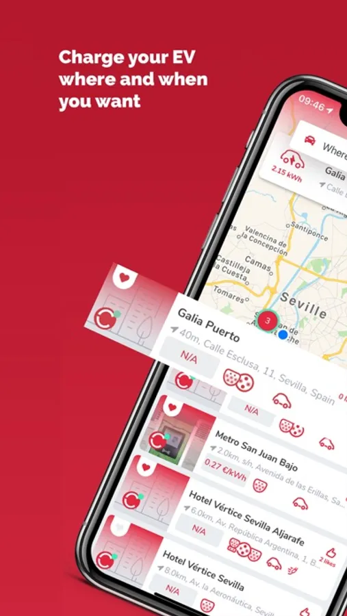 • Map and list of charging stations