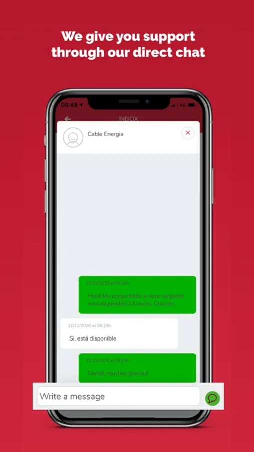 To have an enjoyable experience, we have a dedicated team to support you if you are having problems with any charging point or charging station. Our app offers you a real time chat with our control room to solve any eventuality.