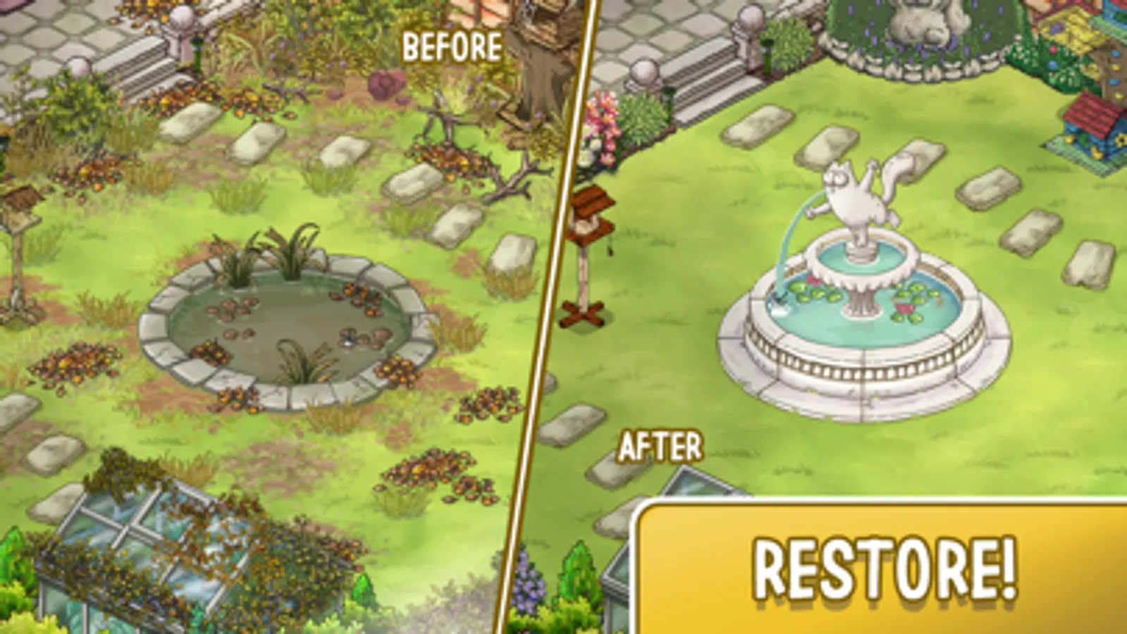 - Renovate and explore the unique gardens of the Simon’s Cat world!