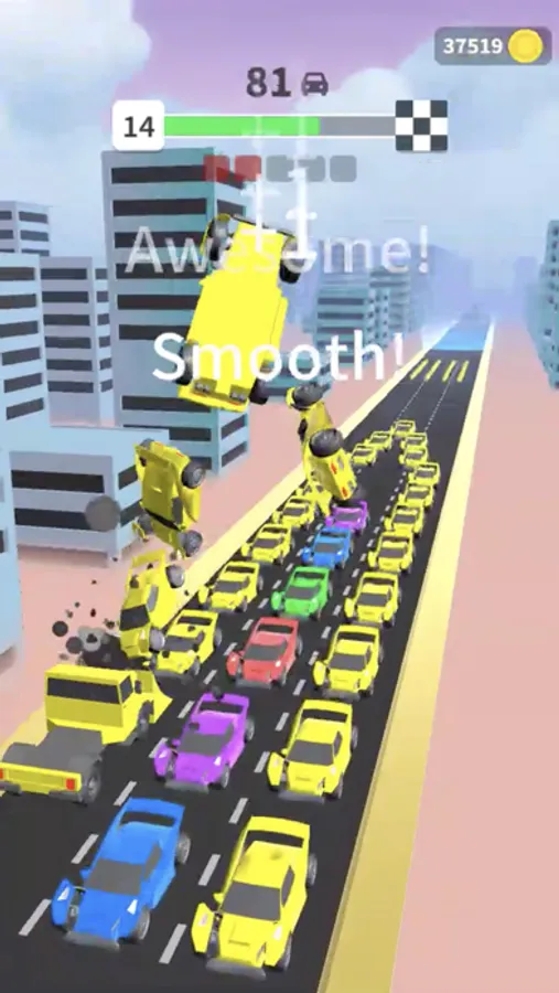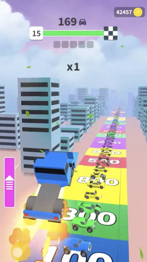 Drive the truck and crash the right color cars and finally fly over them to crash more cars. Crash cars in a row and a boost your truck and continue crushing in a more satisfying way!