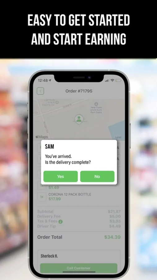 When customers place an order, our app offers the deliveries to drivers who earn money by picking up and delivering them. You can earn great tips as well!