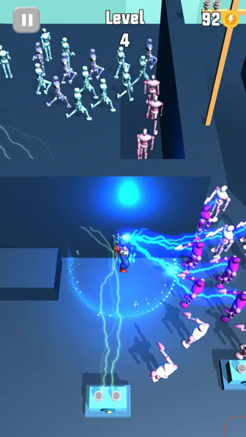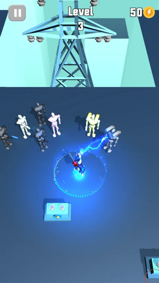 Tens of different Levels are waiting for you. You should collect the coins, increase your capacity and shock your robot enemies by using your Electric!