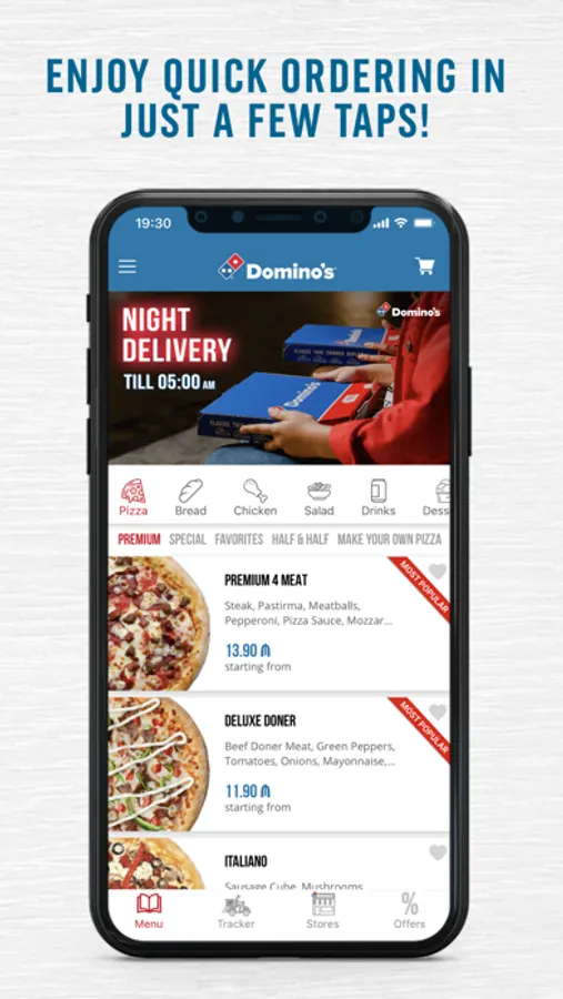 • Watch REAL-TIME the progress of your pizza while it’s being made until it gets to you on the Domino’s Tracker ®