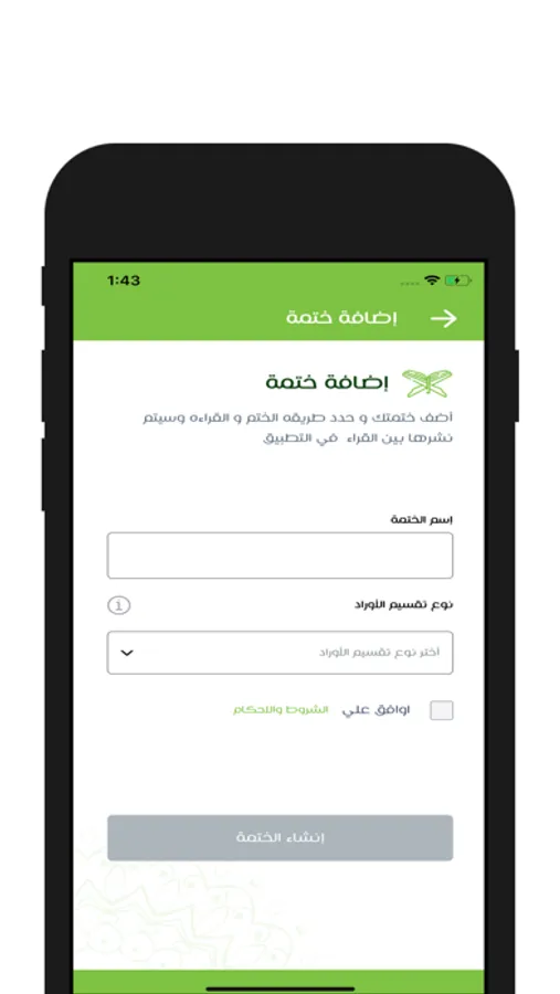 يمكن إنشاء ختمات عامة أو خاصة بتقسيم القرآن الكريم إلى جزء ، حزب ، ربع حزب ، صفحة توزع بين المشاركين.