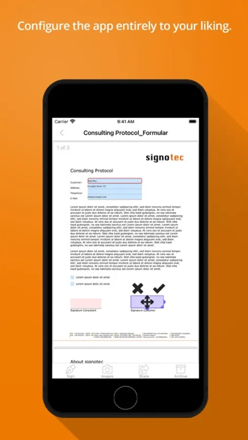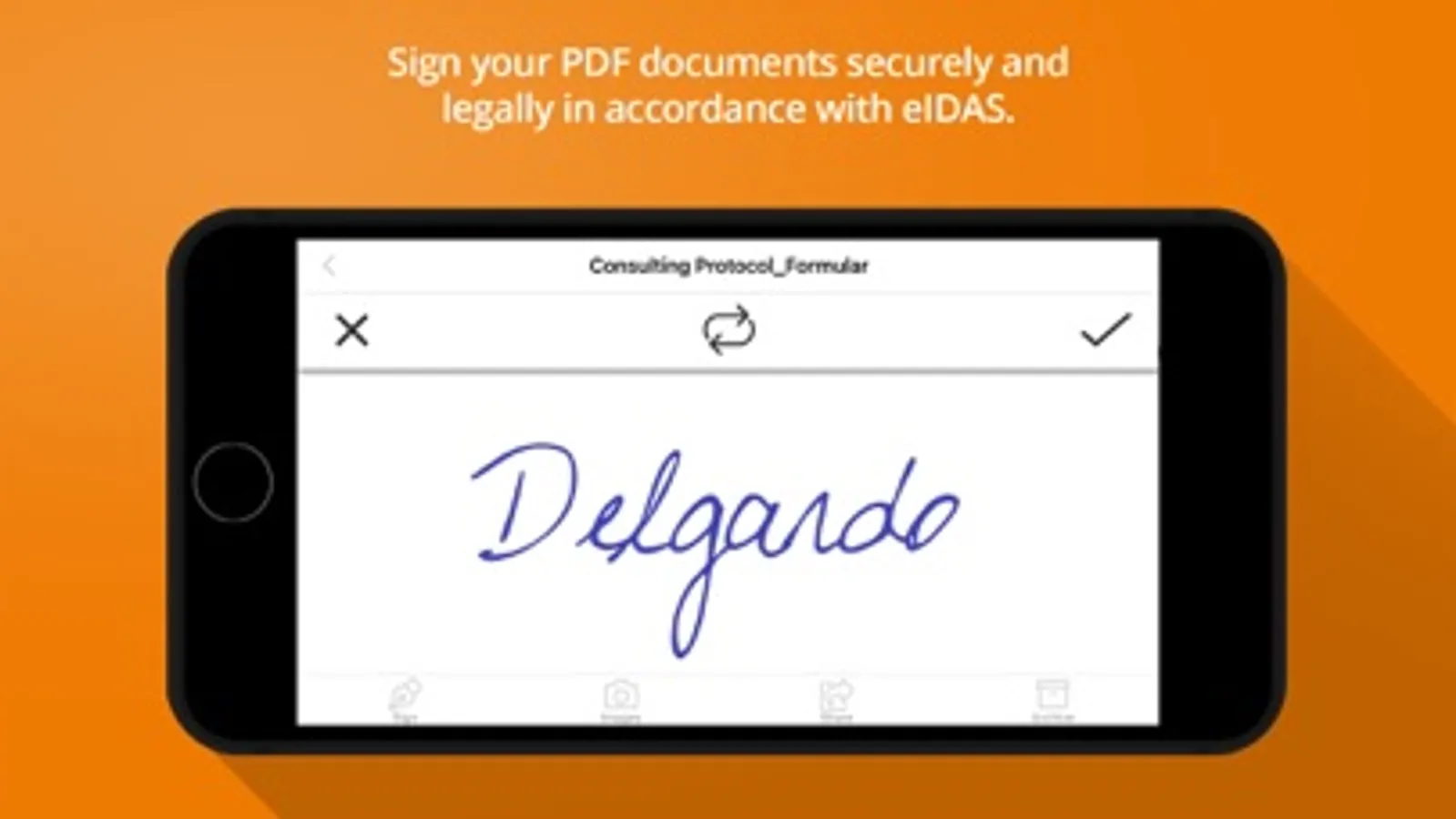 Sign PDF documents conveniently on your iPhone or iPad with your biometric, digital signature using finger or pen input. At the same time, meet the legal requirements for an advanced electronic signature according to the eIDAS regulation.