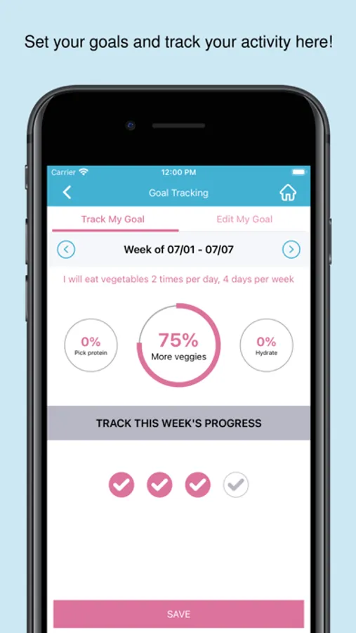 Note: The Healthier Weight program integrates with the iOS Health app (iOS HealthKit) to bring user the ability to measure and display users daily steps within application.