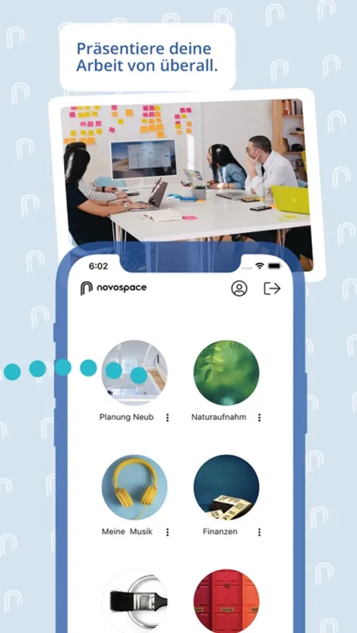 Novospace is your cloud storage with a unique personal ambience. Set up beautiful Spaces for your projects and assign individual title pictures and enjoy a perfect personal overview of your current projects. And the best: 5 GB are free.