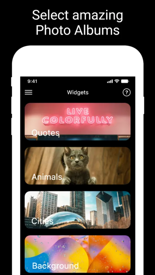 - or select an stunning photo category: Quotes, Nature, City, Background (and many more to come...)