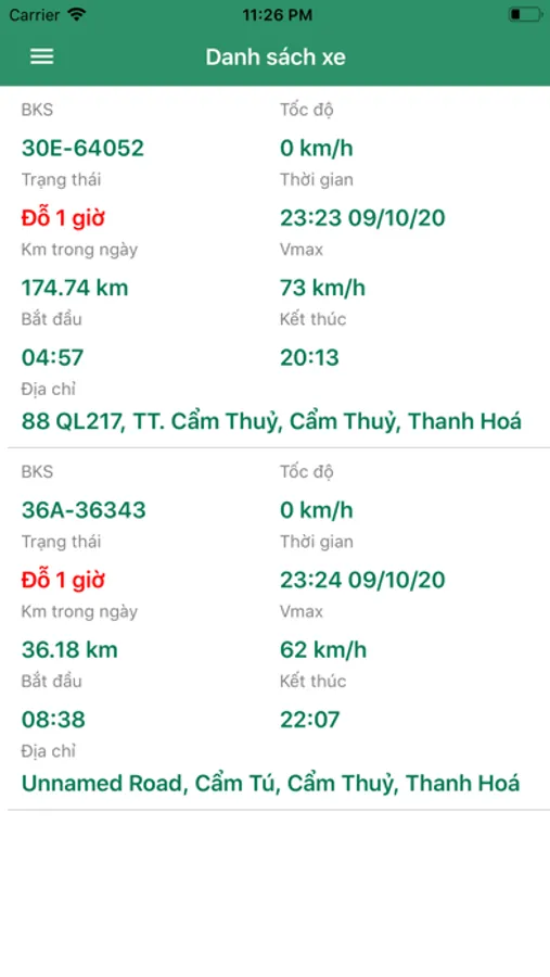 - Danh sách thiết bị với trạng thái và địa chỉ hiện tại