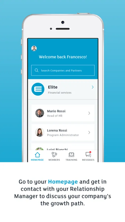 In the "Members" section you will find all the participants of the ELITE network in the world. Use the direct message feature to get in touch.
