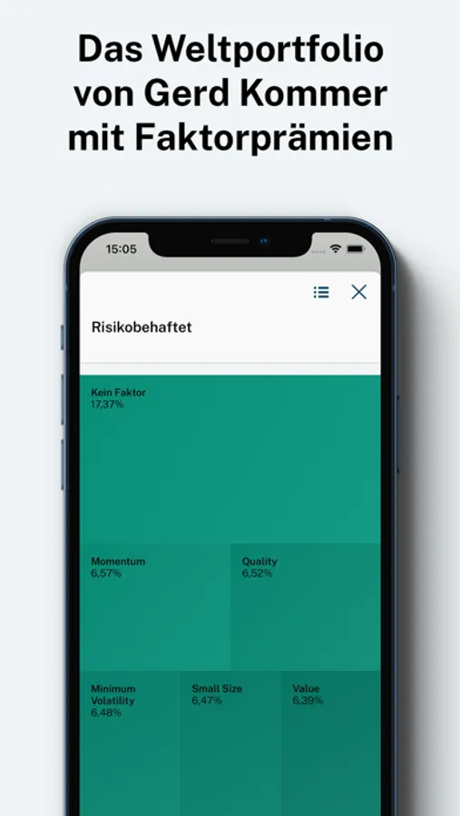 In portfolio construction, we overweight so-called factor premiums: These are drivers of return and risk identified by science. We only take into account the best proven factors of small size, value, quality, momentum and minimum volatility.