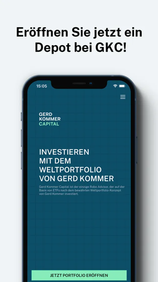 You want to invest as confidently as Gerd Kommer? Are you looking for a scientifically sound investment solution that maximises your portfolio return for your personal risk-bearing capacity and also does all the work for you? Then invest now with Gerd Kommer Capital's Robo Advisor based on ETFs according to Dr. Gerd Kommer's "Weltportfolio" concept. Open your portfolio today!
