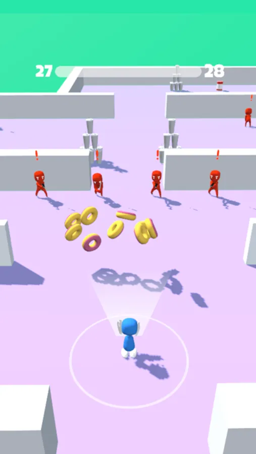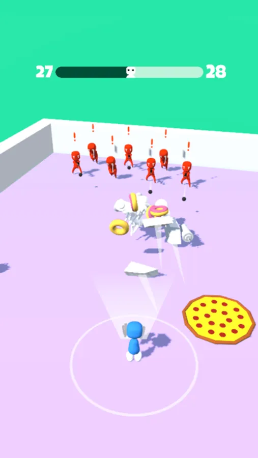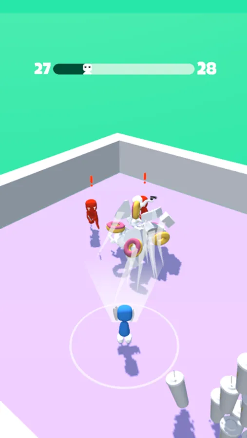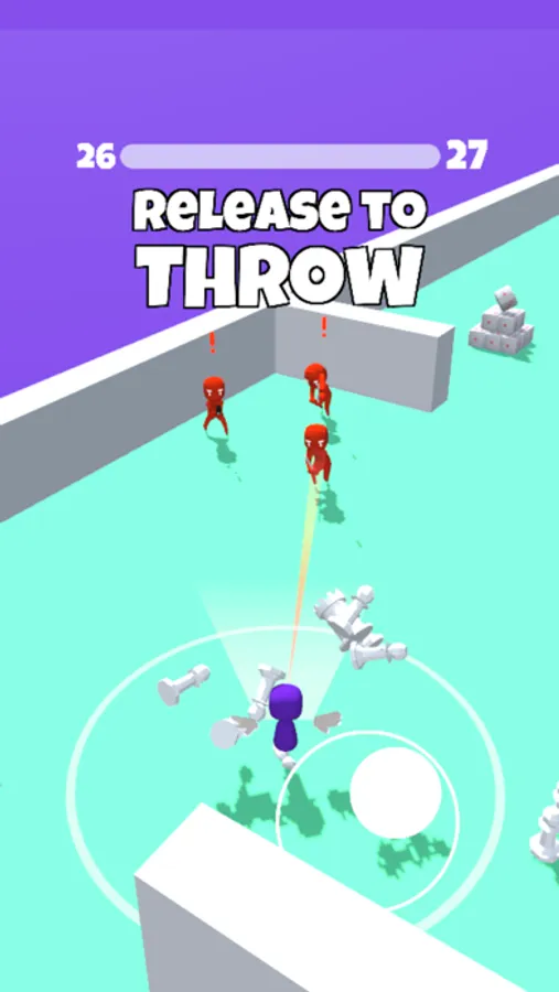 Move around, collect various objects and blast them into enemies. Make sure to dodge the bullets and get rid of the melee enemy!