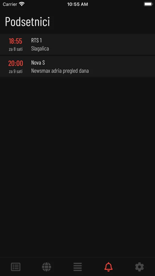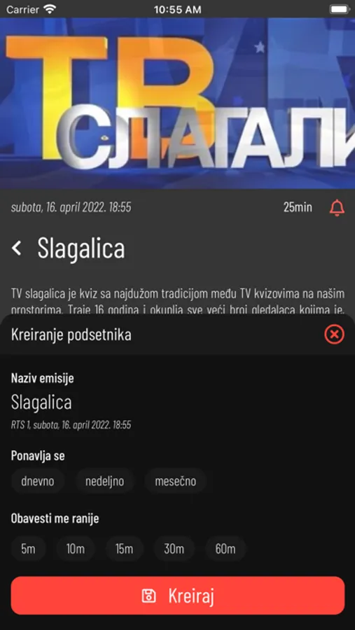 - Podsetnik - spisak kreiranih podsetnika. Za bilo koju željenu emisiju je moguće kreirati podsetnik. Podsetnik se može ponavljati dnevno, nedeljno ili mesečno. Takođe, može se oglasiti 5, 10, 15, 30, 60 minuta pre početka emisije.
