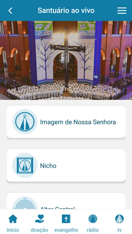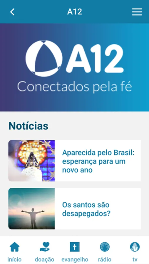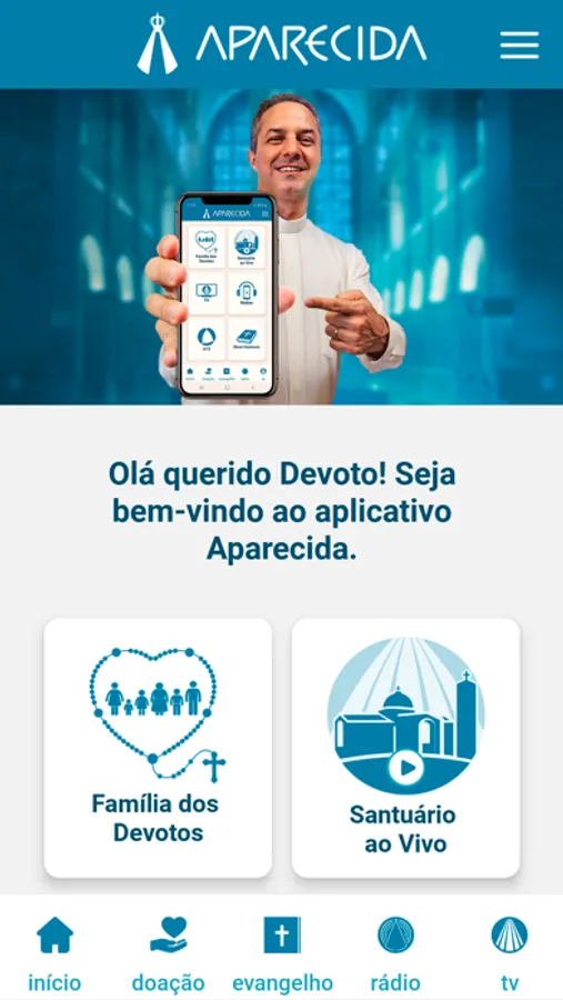 O aplicativo Aparecida reúne o Santuário Nacional, Rádio e TV Aparecida, Editora Santuário e Portal A12 com um único objetivo: levar a Boa Notícia do Evangelho a todos os devotos de Nossa Senhora Aparecida. Experimente!