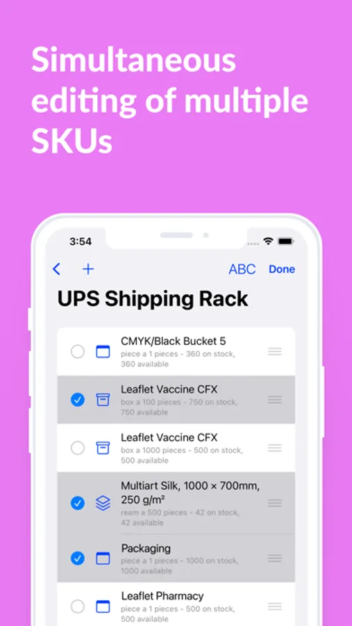 The Keyline Warehouse app gives you the possibility to access and adjust the stock and storage locations of all materials in your print shop:
