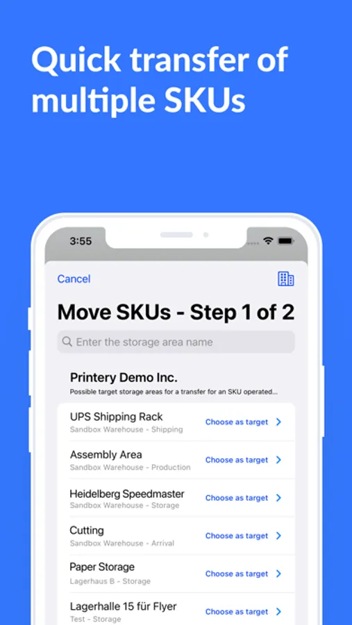 Mobile overview and management of storage locations on the iPad or iPhone.