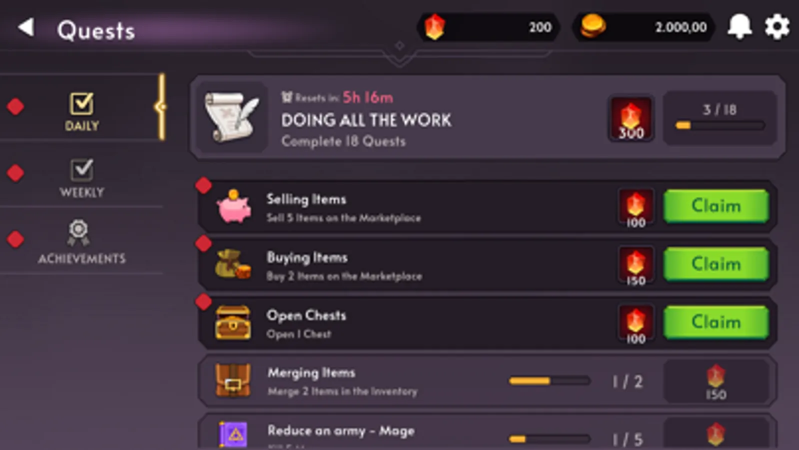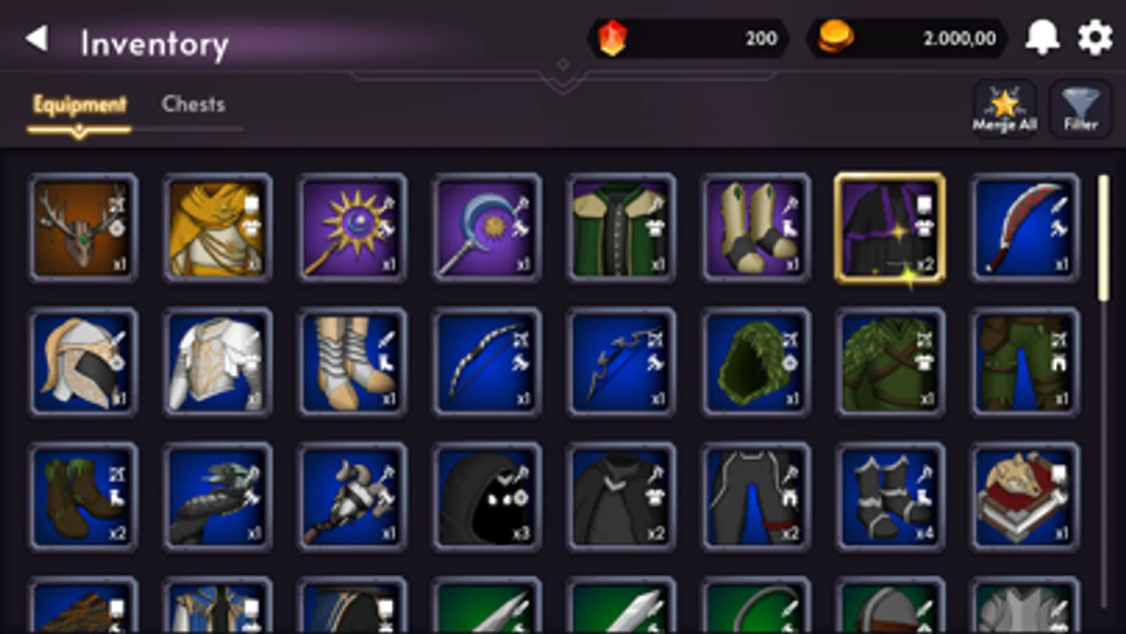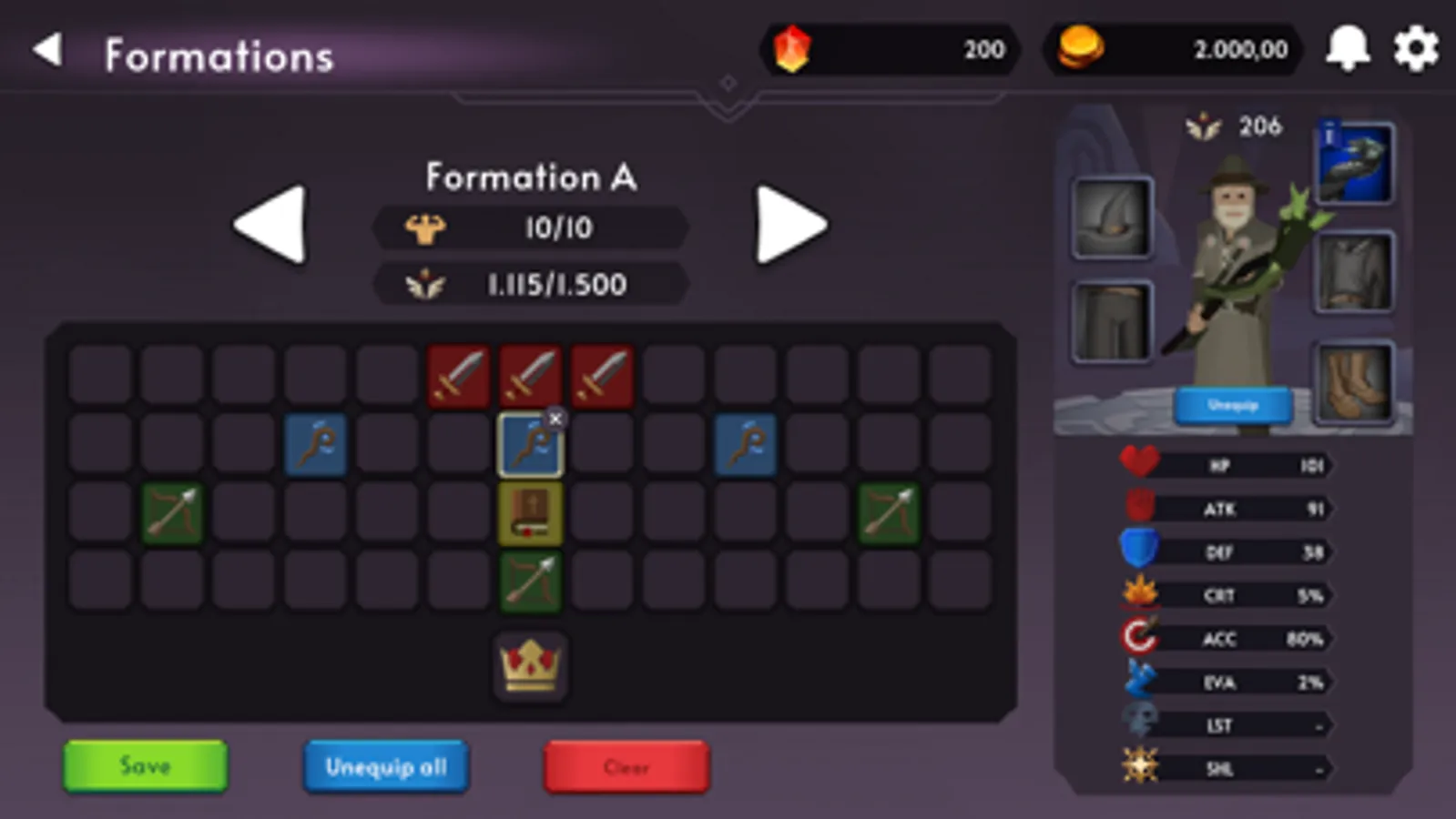 As you face off against opponents in thrilling turn-based matches, strategically position your units on the battlefield with up to three customizable formations. Choose from the powerful Knight, agile Hunter, mystical Mage, or supportive Priest to build your army. Equip your units with your collected items to enhance and strengthen them and watch as their combined power determines the outcome of each match.