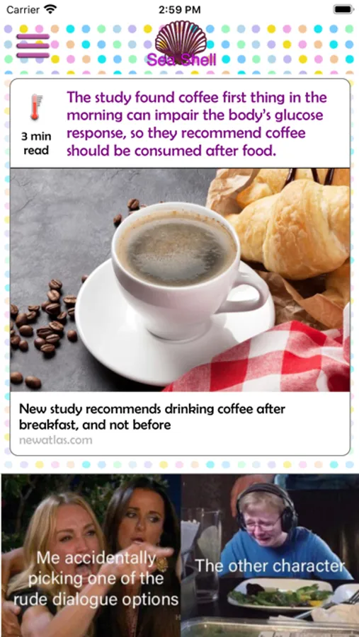 Sea Shell is a content media mobile application. It’s a curated composition of articles, videos, memes, and other great internet content.