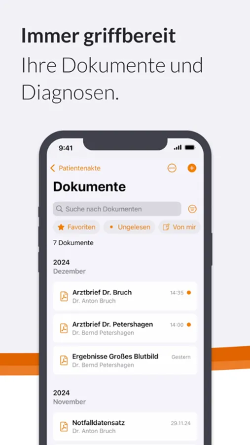 • Immer griffbereit: Ihre Dokumente und Diagnosen.