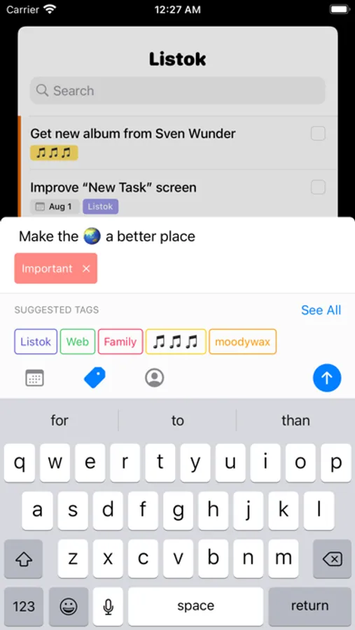 - Tags — organize tasks with custom tags, so you can tackle tasks however you like.