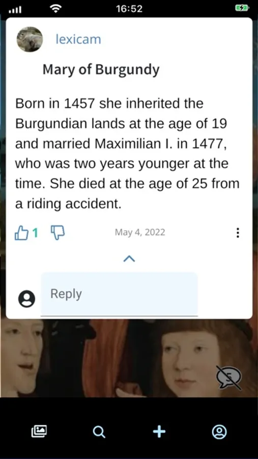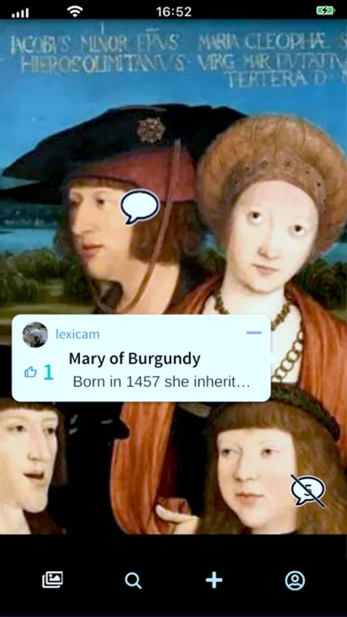 Artists and curators can upload images of their art in high resolution and share their background stories. Visitors can explore interesting details by searching with their mobile camera or by browsing within LexiCam.