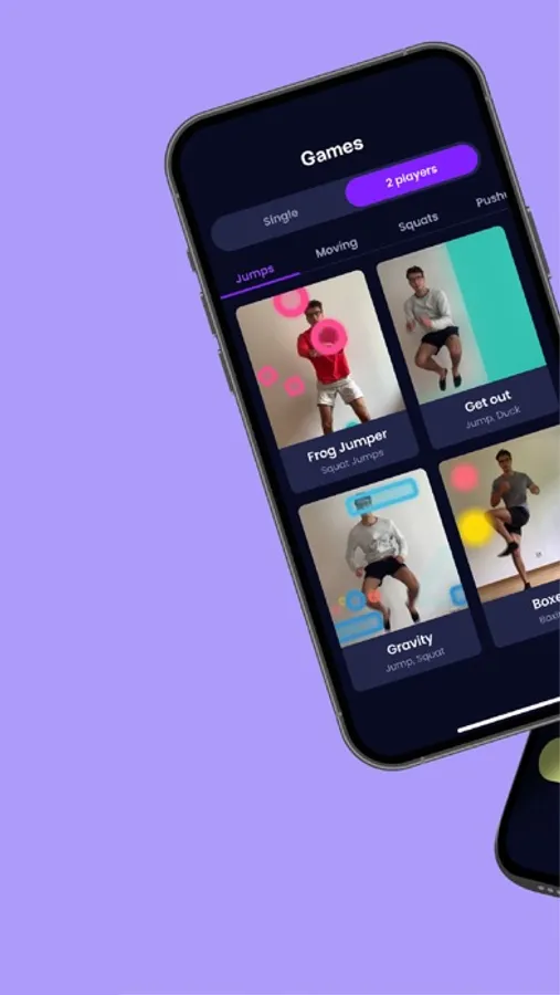 Just place your device in front of you and the AI translates your body movements into game controls on your screen. You can choose from an ever-expanding variety of games for all kinds of exercises to play alone or online against your friends.