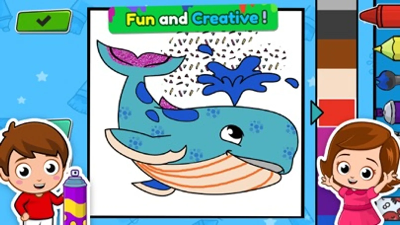 • 7 Coloring Tools: Crayons, Glitters, Spray Cans, Brushes, Patterns and more…
