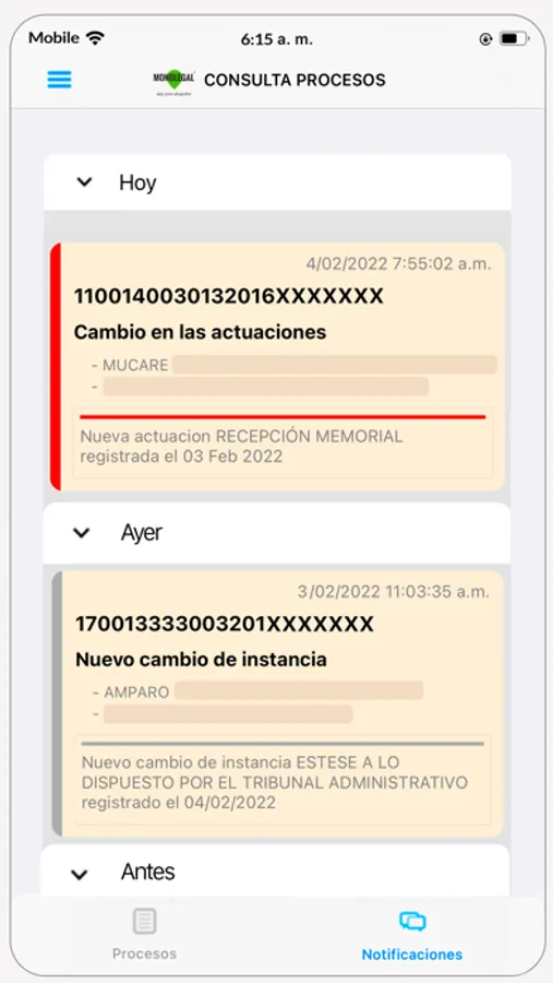 Hemos renovado nuestra app para ofrecerte una mejor experiencia, Ahora con Monolegal – Expediente Digital, podrás visualizar tus procesos registrados en nuestro servicio de vigilancia judicial de una forma más intuitiva, recibir notificaciones de nuevos cambios en las actuaciones antes de las 8 AM y acceder al historial de tus procesos desde cualquier lugar.