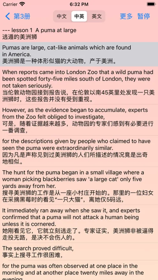 包括中英文对照、同步播放、课后练习