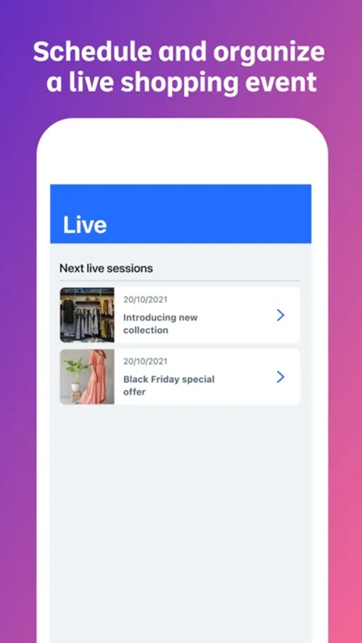 - Promote your products live through your Live Streaming channel included in your online store, using the dedicated apps or through your personal area.