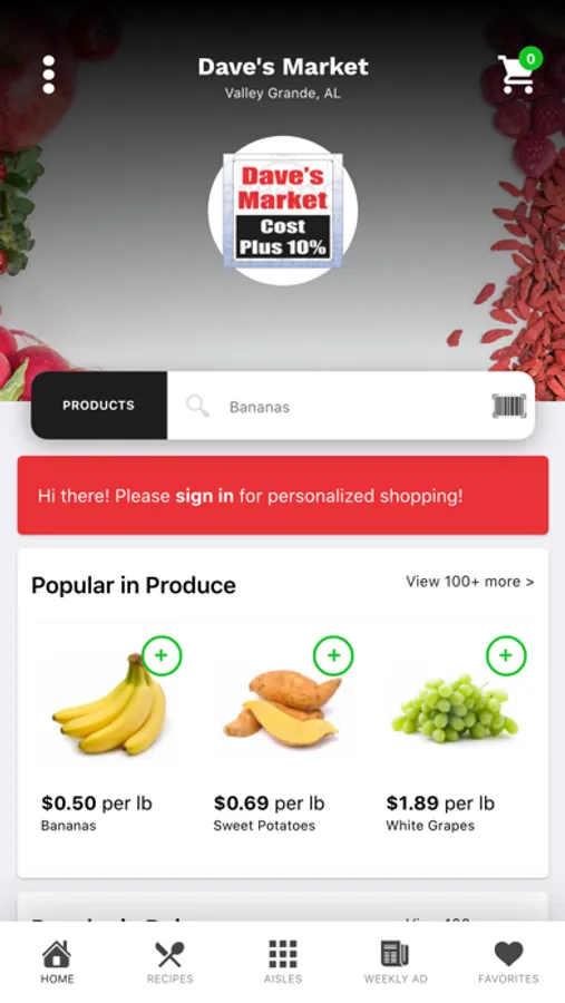 Order your groceries from Dave's Marketon the go on your mobile device or from your iPad on your couch. Our award-winning grocery app makes grocery shopping a breeze with quick access to our weekly circular, an easy-to-use product search, detailed product details and labeling, tasty recipes, and family meal planning tools. What could be better than that?