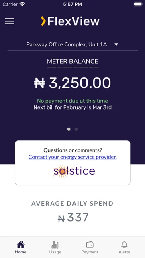 The SHYFT FlexView app connects to a home energy meter installed at your home. SHYFT Flexview gives you insight into your power consumption and the associated cost of the energy based on the rates that your facility manager establishes in the FlexView Manager portal.