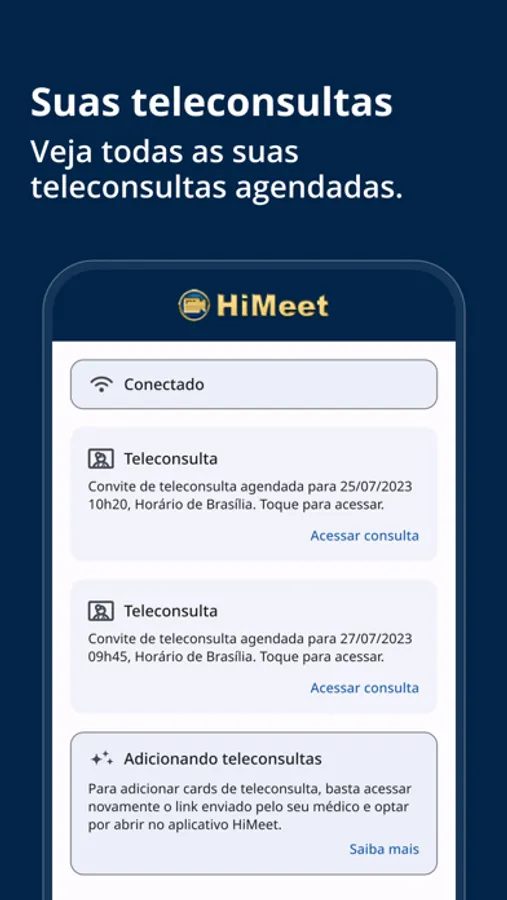 O HiMeet é um sistema de videoconferência gratuito para você realizar suas consultas médicas em qualquer lugar.