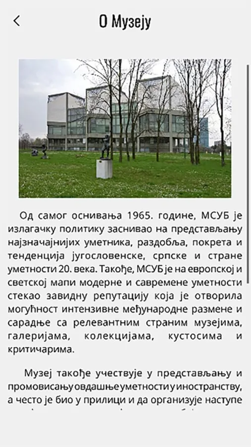 The application is a multimedia guide about Museum of Contemporary Art in Belgrade.