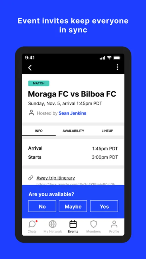 Soccer teams love Bella Football to centralize their communication and automate their scheduling. More than a sports team communication tool, Bella is also a professional soccer network—create your public profile, list your experience, and grow your network of soccer contacts. Bella is free to use and there are no ads.