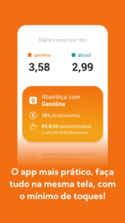 Ao contrário dos outros apps de calculadora de combustível, o "Álcool ou Gasolina" foi projetado para ser o mais prático possível: