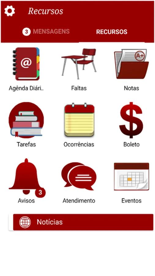 Fica informado sobre os eventos, notícias, acompanhamento diário, notas, faltas, comunicados da coordenação, atendimento e muitos mais. Tudo organizado por categoria para facilitar a busca. De qualquer lugar a qualquer hora, na ponta dos dedos.