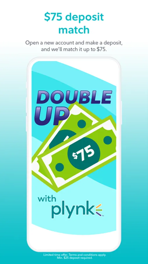 Open a new account and make a deposit, and we’ll match it up to $75. Another way Plynk makes it refreshingly easy to invest.