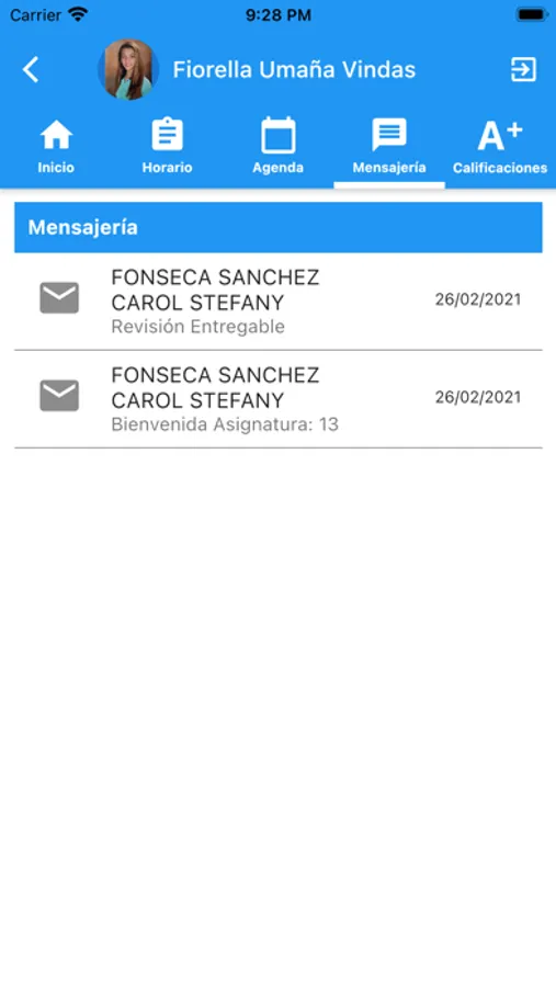 • Mensajería: ¡una excelente herramienta!, permite a los estudiantes y docentes interactuar de manera eficiente.