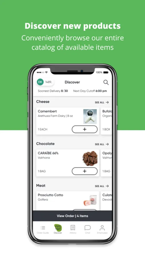 Our mobile app lets you search our complete product catalog, manage and update your ordering guide, and buy what you need at the moment you need it. It’s part of our commitment to giving you an ordering experience you’ll love.