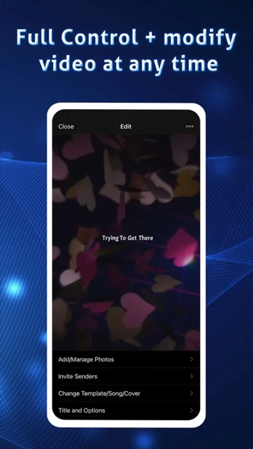 Your video is dynamic. It can be modified at any time. Add/remove photos, change template, etc. Approve photos sent by fans, and they will appear in your video immediately.